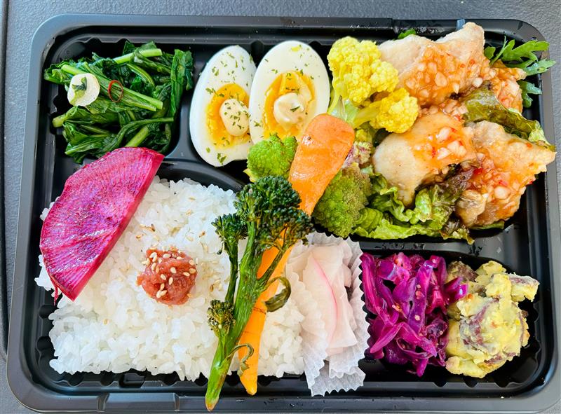 ごきげんファームで作られた有機野菜と平飼い卵を使い、旬を感じられるこだわりのお弁当です。ぜひ、一度ご賞味ください。
